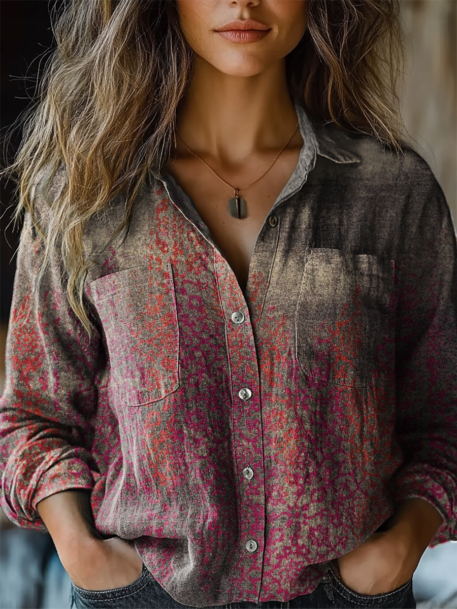 Women's Retro Ethnic Pattern Print Casual Long Sleeve Comfortable Cotton Shirt