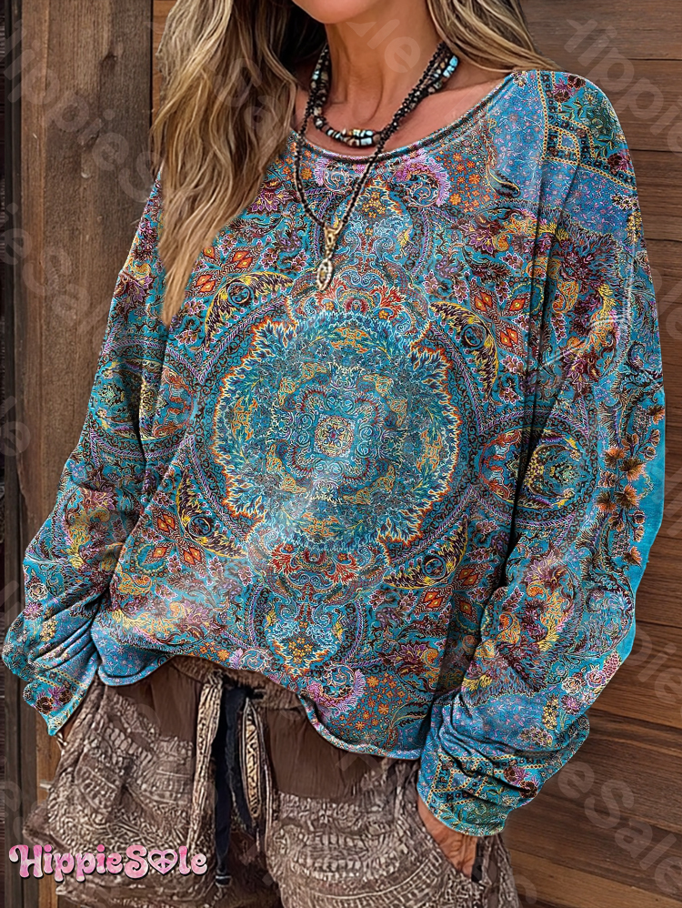 Women's Ethnic Floral Tattoo Art Print Casual Long Sleeve T-shirt