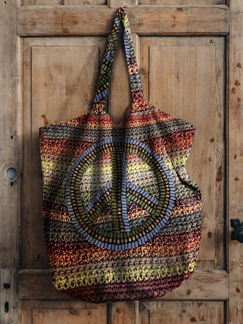 Colorful Striped Hippie Pattern Art Printed Linen Tote Bag