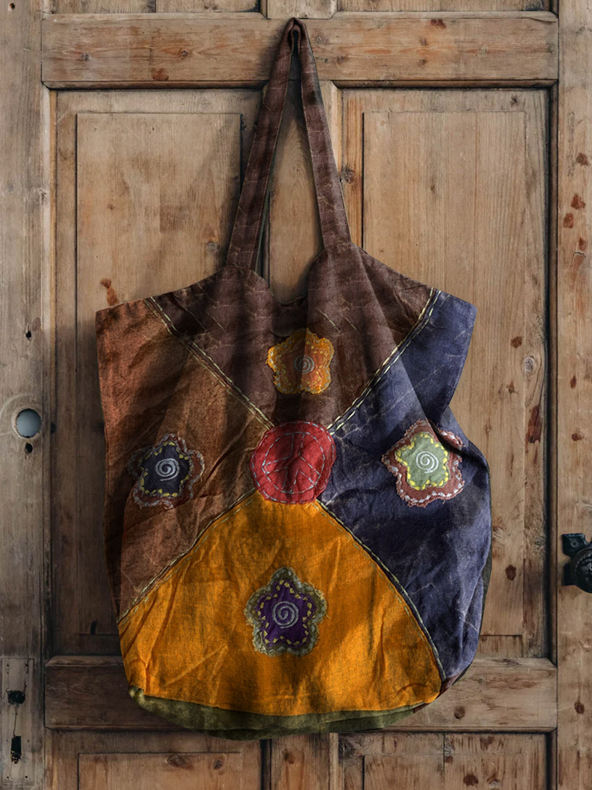 Floral Patchwork Pattern Art Print Linen Tote Bag