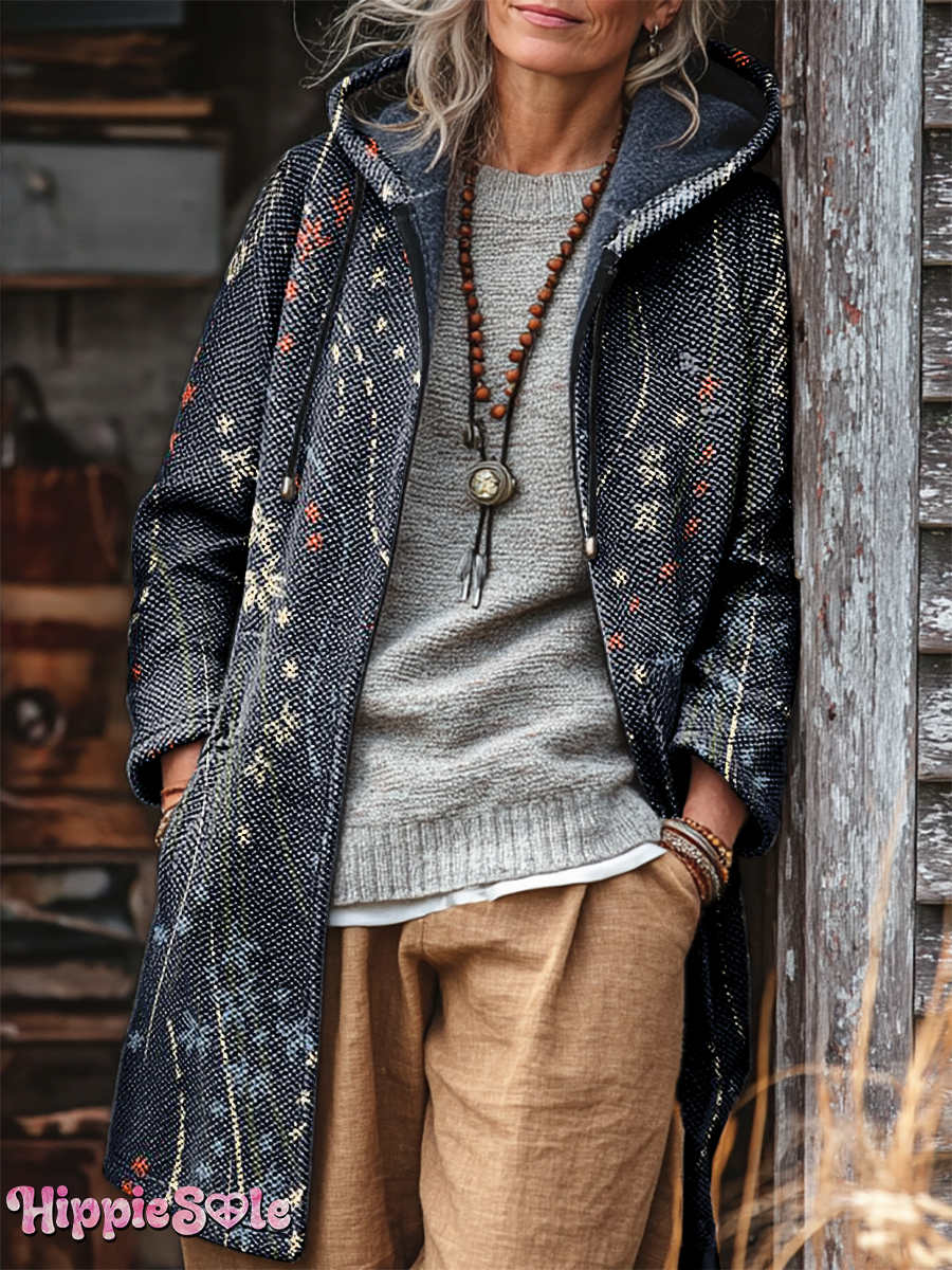 Unisex Flowers Print Plush Thick Long-Sleeved Sweater Cardigan Coat