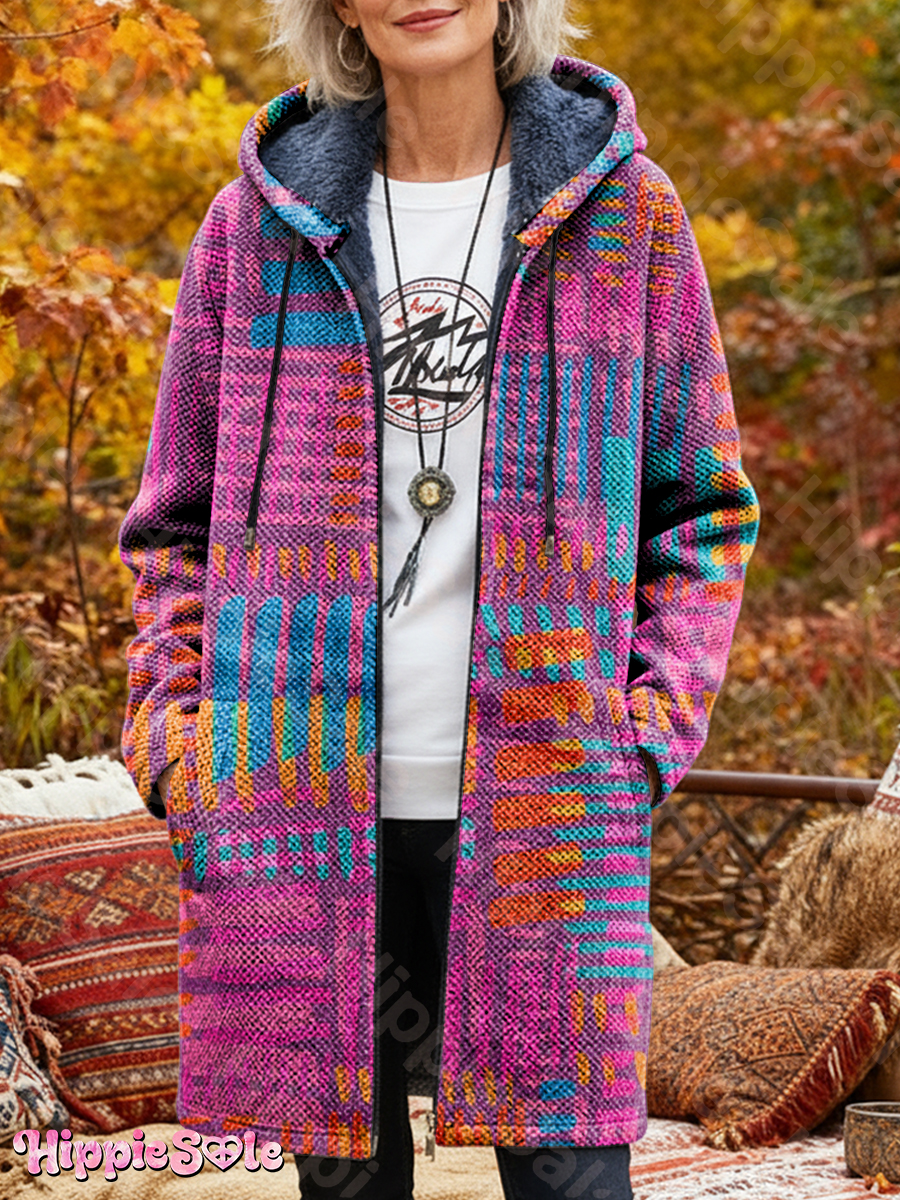 Unisex Geometric Graffiti Art Pattern Print Fleece-Lined Thick Coat