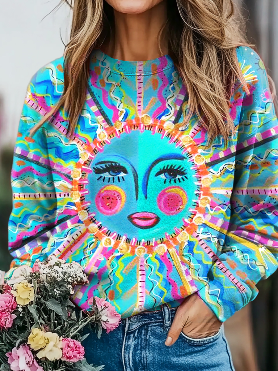 Women's Hippie Sunflower Art Print Casual Sweatshirt