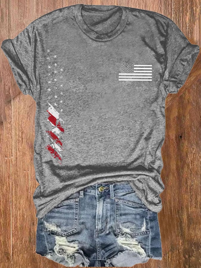 Women'S American Independence Day Flag Print Casual T-Shirt