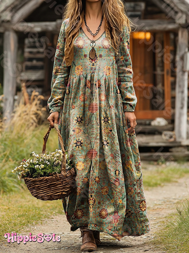 Women's Retro Ethnic Totem Art Pattern Print Pocket Cotton Dress