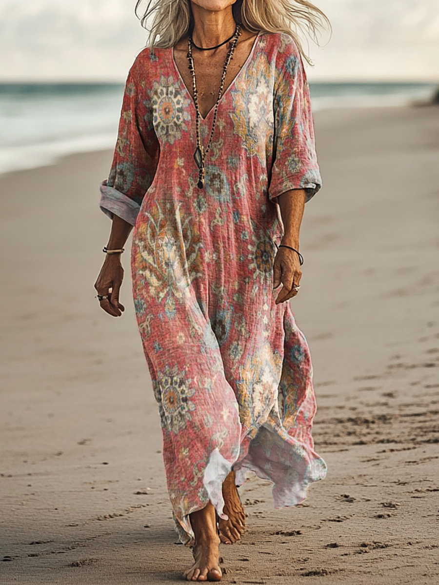 Women's Retro Ethnic Totem Art Print Pocket Cotton Dress