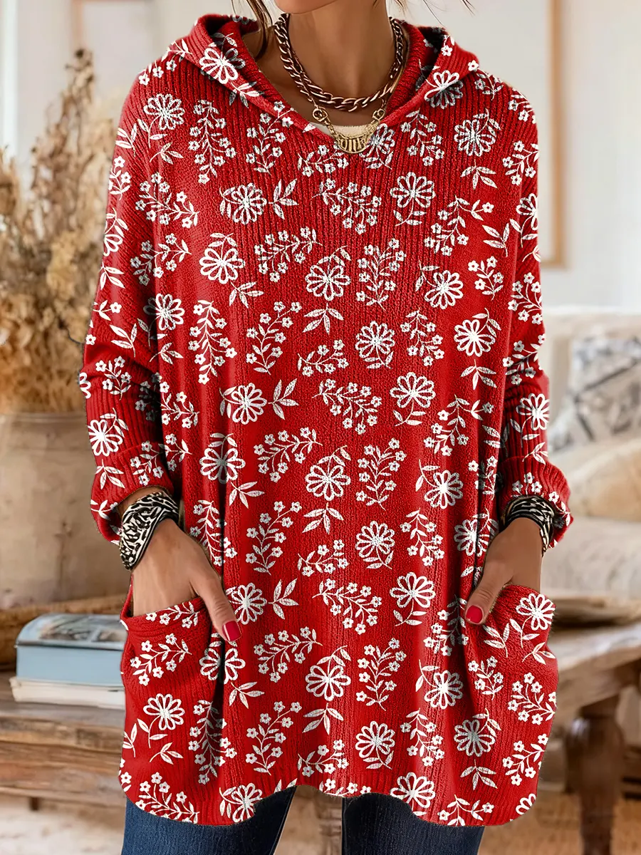 Ethnicity Flowers Geometry Women's Print Casual Long Sleeve Hooded Sweater
