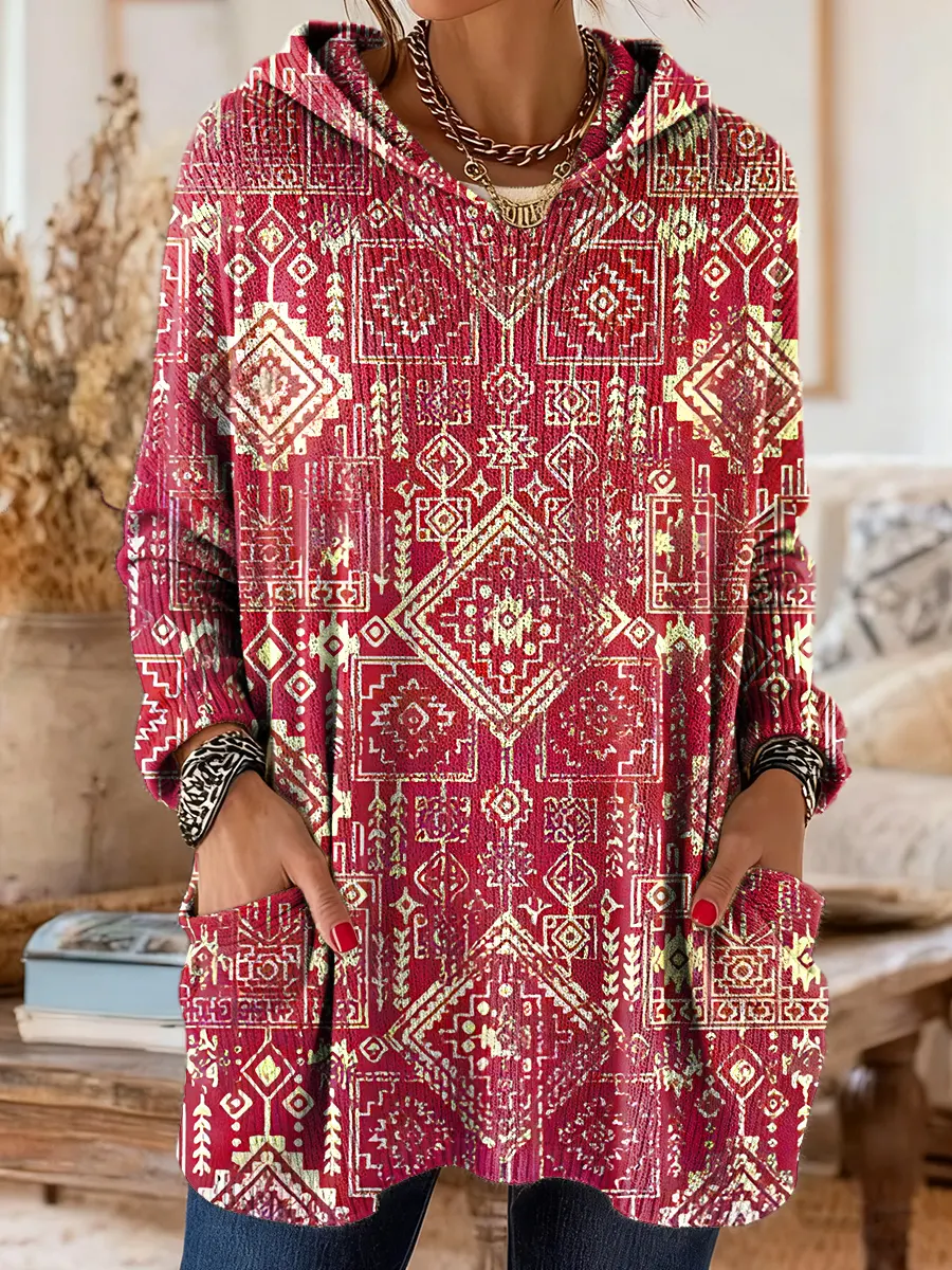 Ethnicity Geometry Totem Women's Print Casual Long Sleeve Hooded Sweater