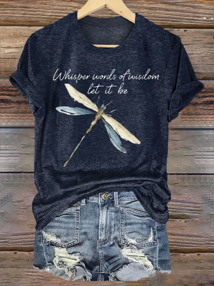 Hippie Dragonfly Art Print Cotton Crew Tee