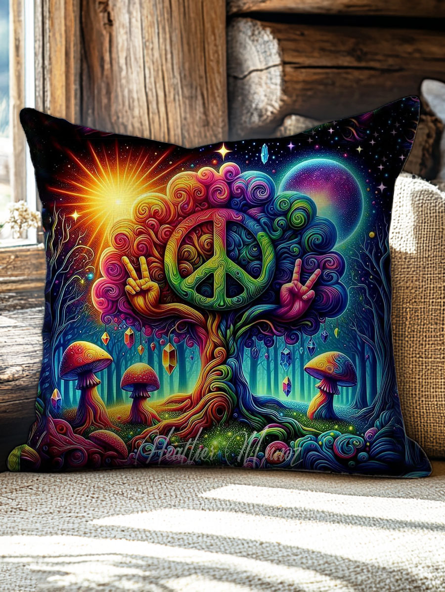 Mushroom Wisdom Tree Hippie Pattern Art Print Leisure Pillow