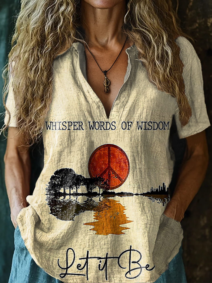 Women's Hippie Whisper Words Of Wisdom Print Casual Short Sleeve Cotton Shirt