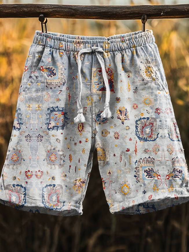 Men's Retro Ethnic Totem Art Pattern Print Comfy 100% Cotton Shorts