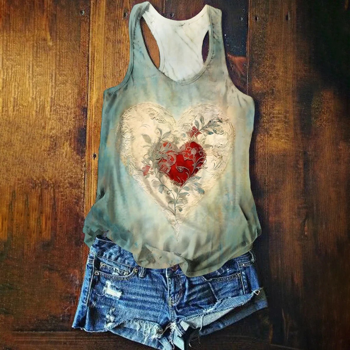 Women's V-Neck Casual T-Shirt with Heart Tattoo Art Print