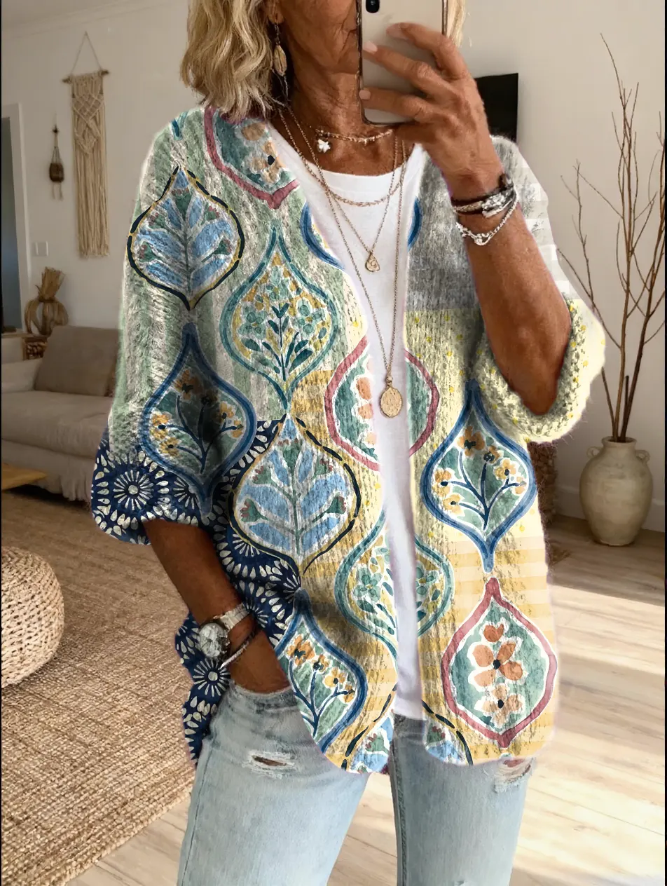Ethnicity Flowers Patchwork Geometry Women's Art Print Casual Cardigan Sweater