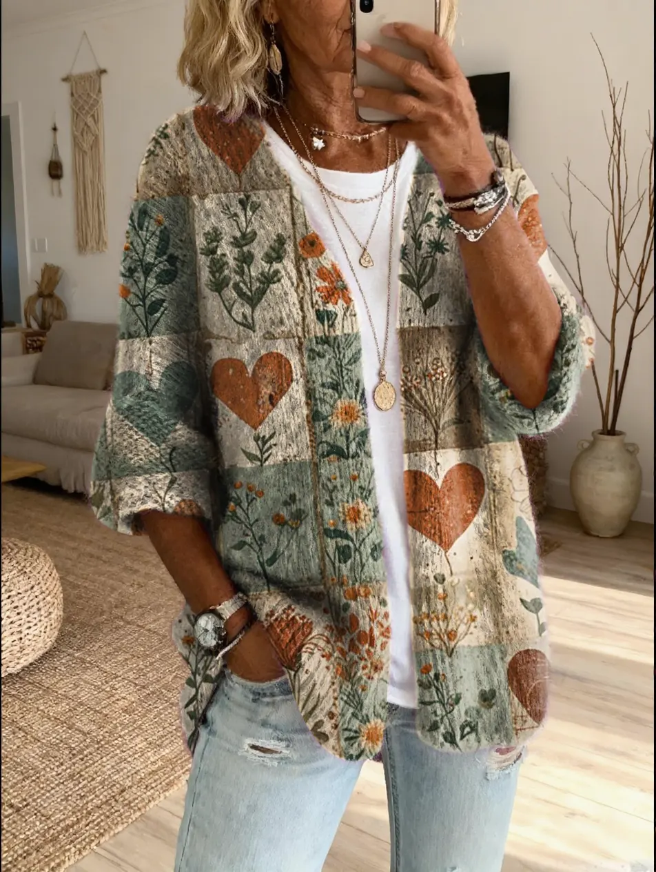 Ethnicity Retro Flowers Love Women's Art Print Casual Cardigan Sweater
