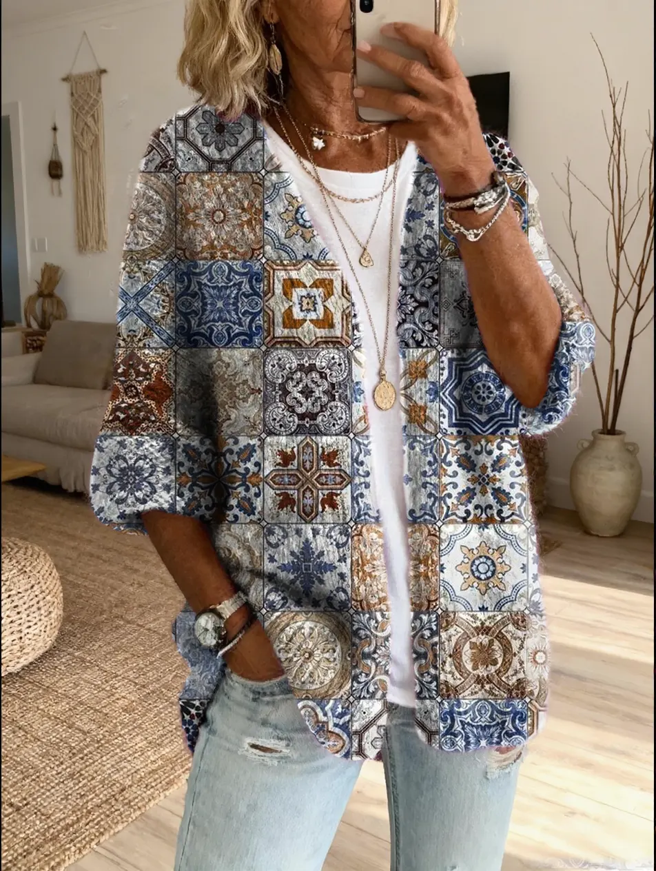 Women's Floral Art Print Casual Cardigan Sweater