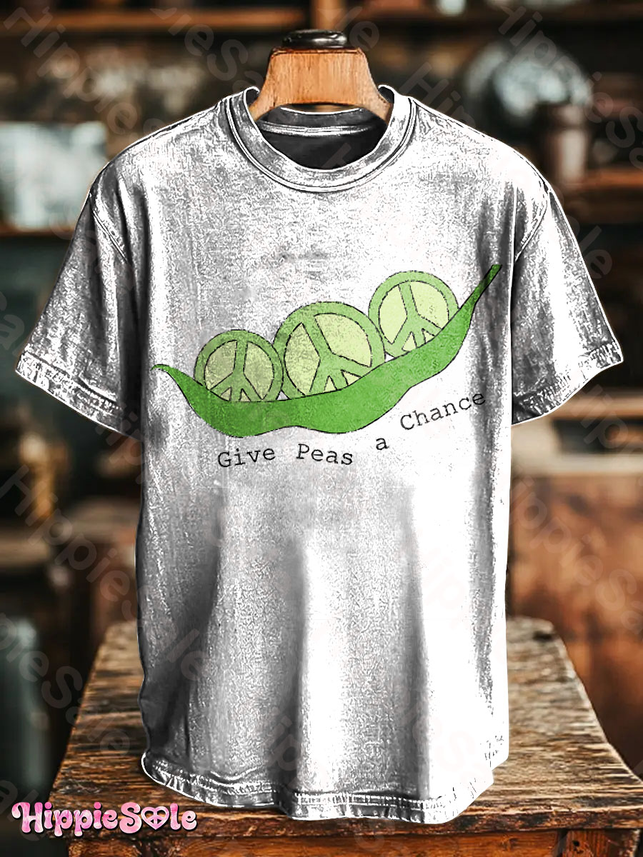 Give Peas A Chance Unisex Vintage Hippie Art Print Casual T-shirt