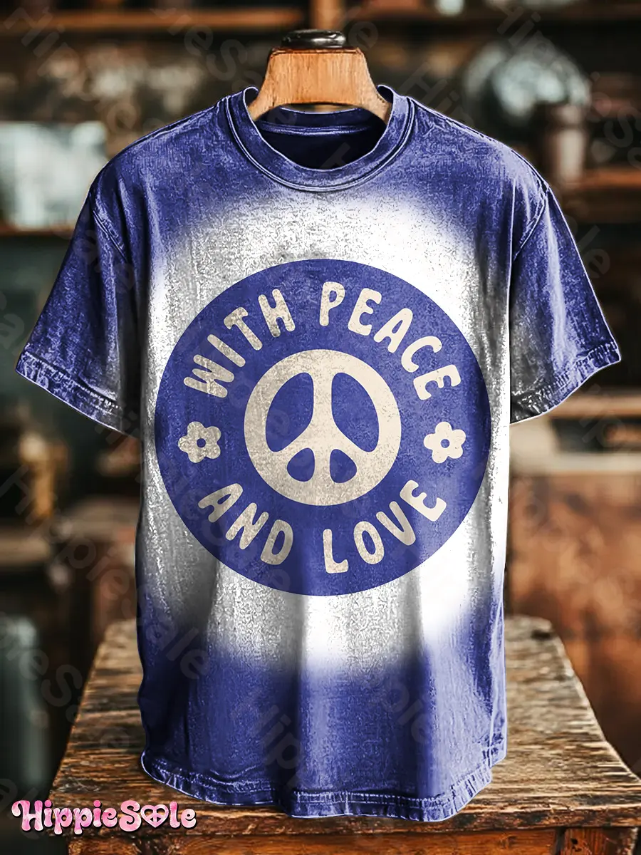 Hippie Peace And Love Unisex Vintage Art Print Casual T-shirt