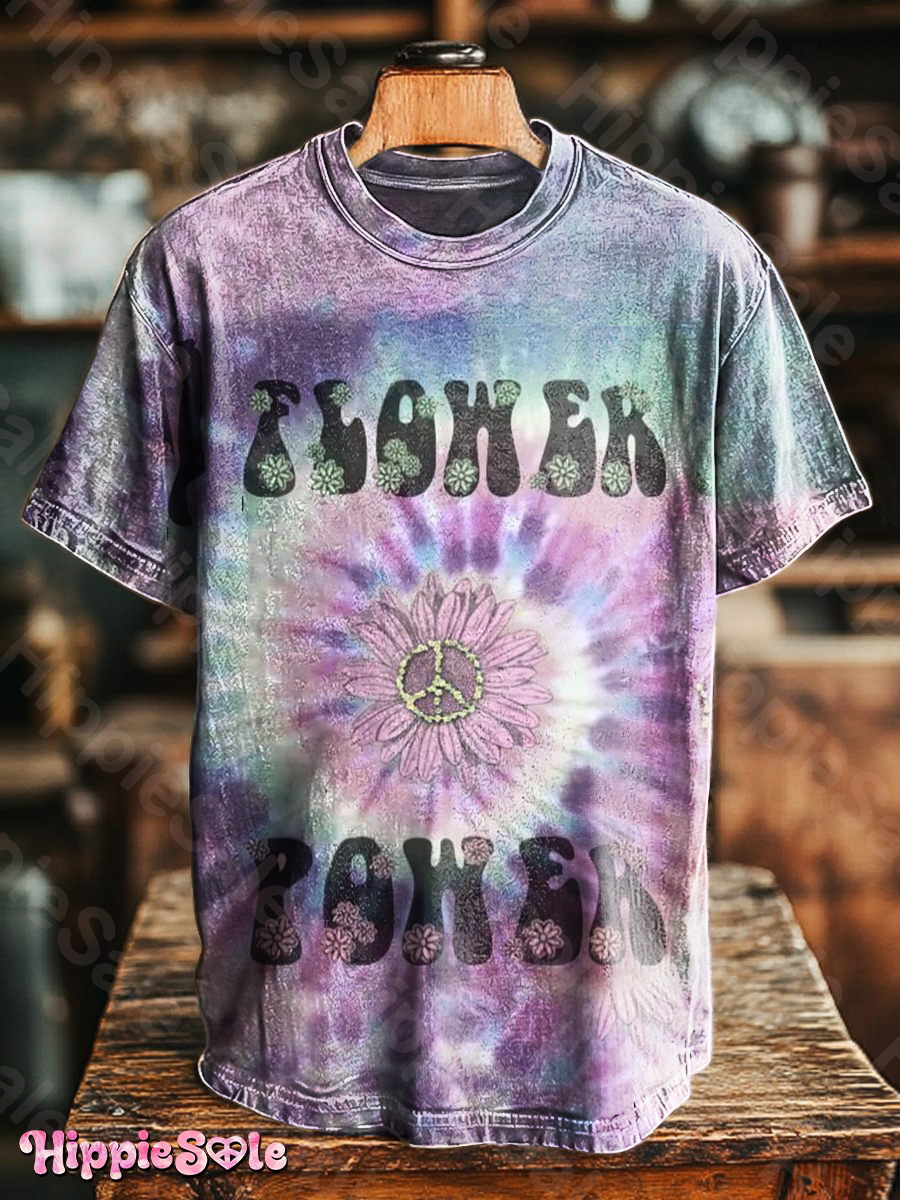 Unisex Hippie Tie-Dye Peace Power Art Print Casual Loose Short Sleeve T-shirt