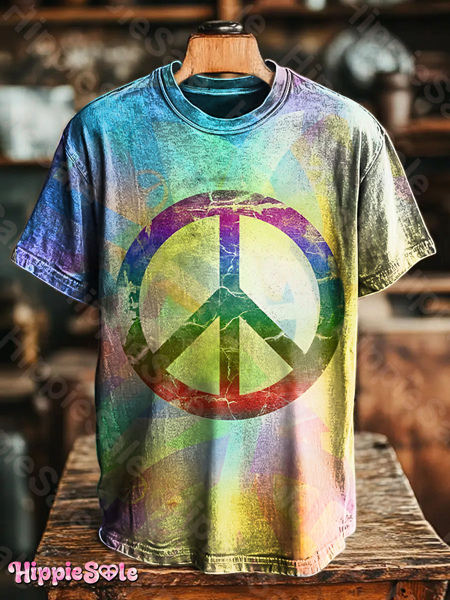 Unisex Vintage Colorful Hippie Weathered Look Print Casual T-shirt