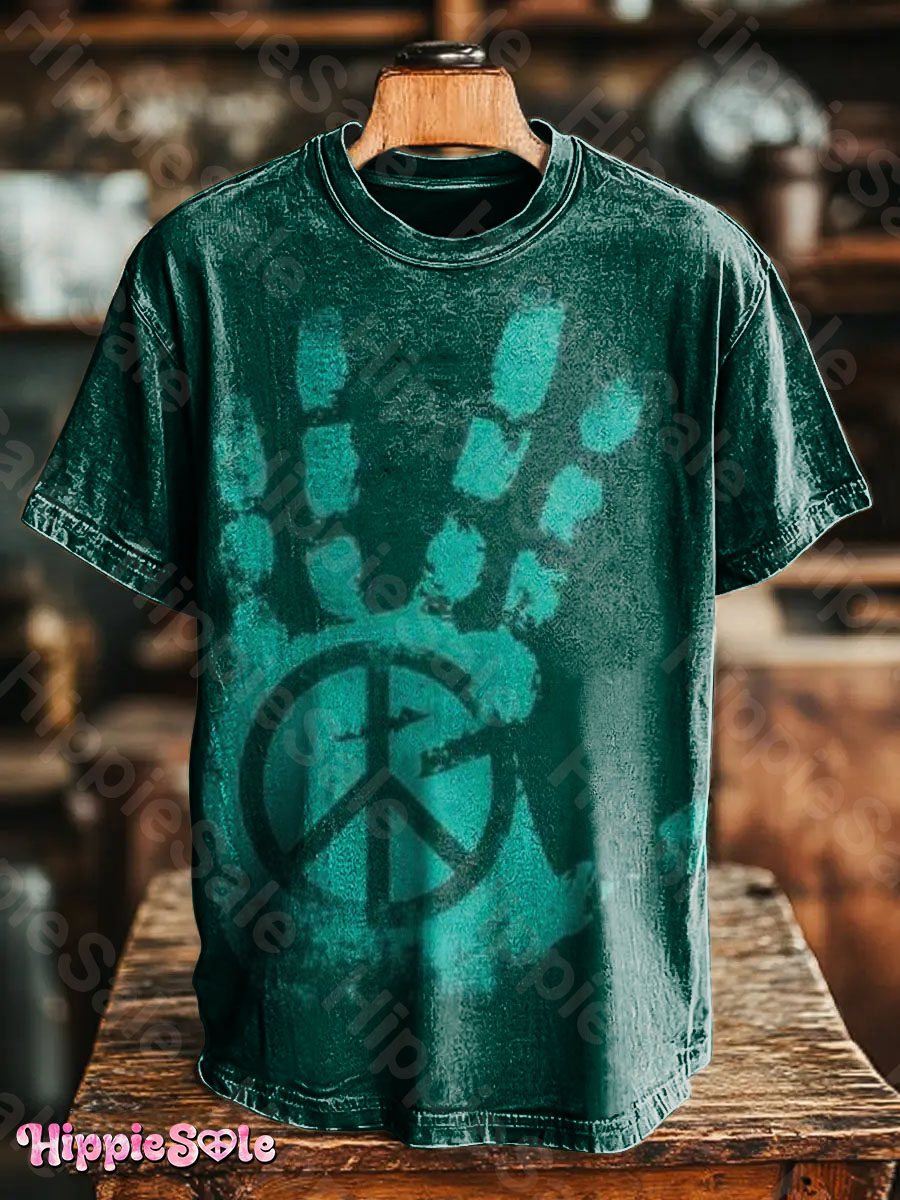 Unisex Vintage Palm Hippie Sign Art Print Casual T-shirt