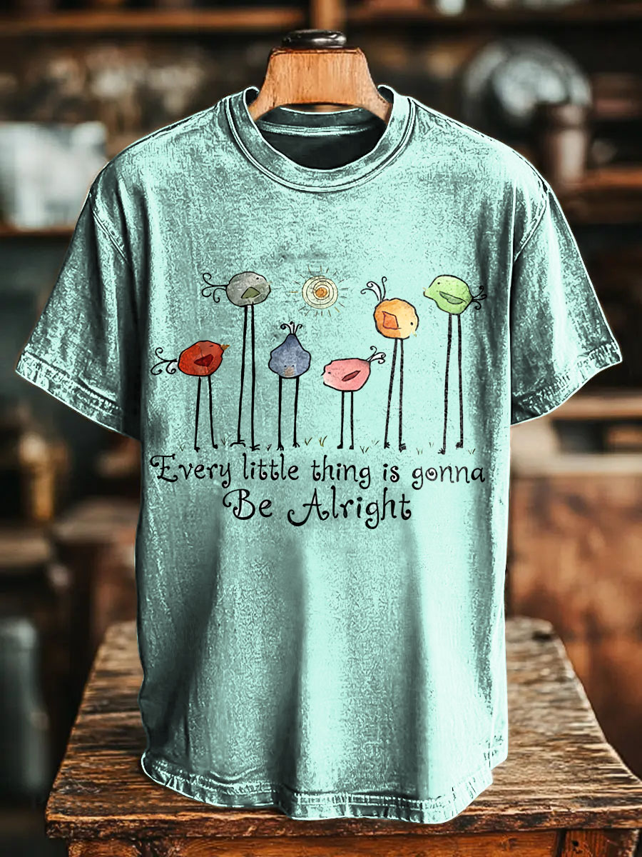 Every Little Thing Is Gonna Be Alright Shirt Little Birds Hippie Vintage Art Print Casual T-shirt For Men And Women