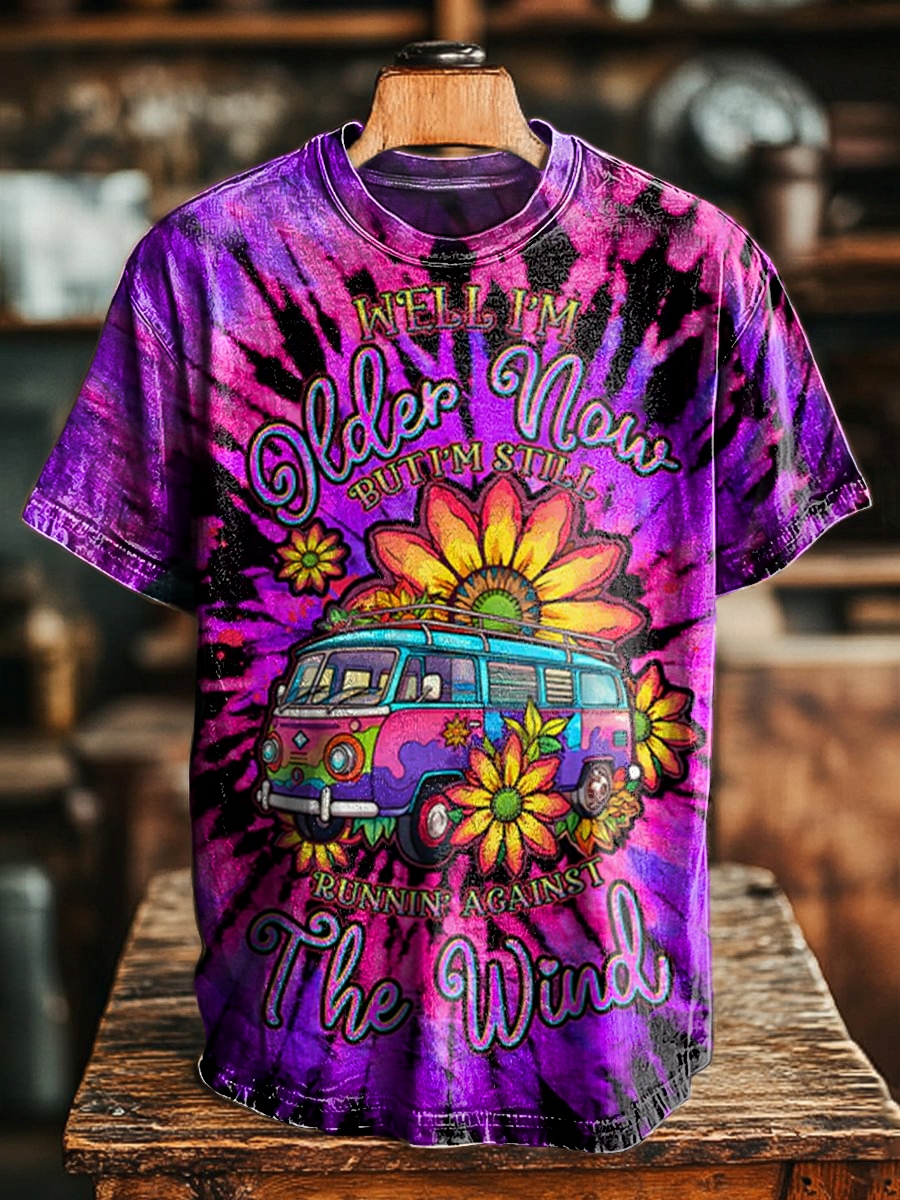 Unisex Running Against The Wind Tie Dye Print Casual Loose Short Sleeve T-Shirt