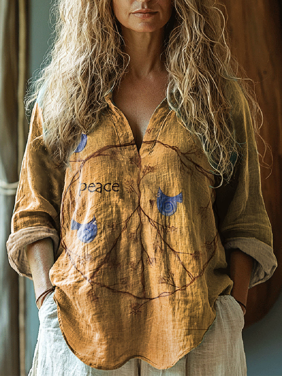 Love Peace Hippie Print Casual Long Sleeve Comfortable Cotton Shirt