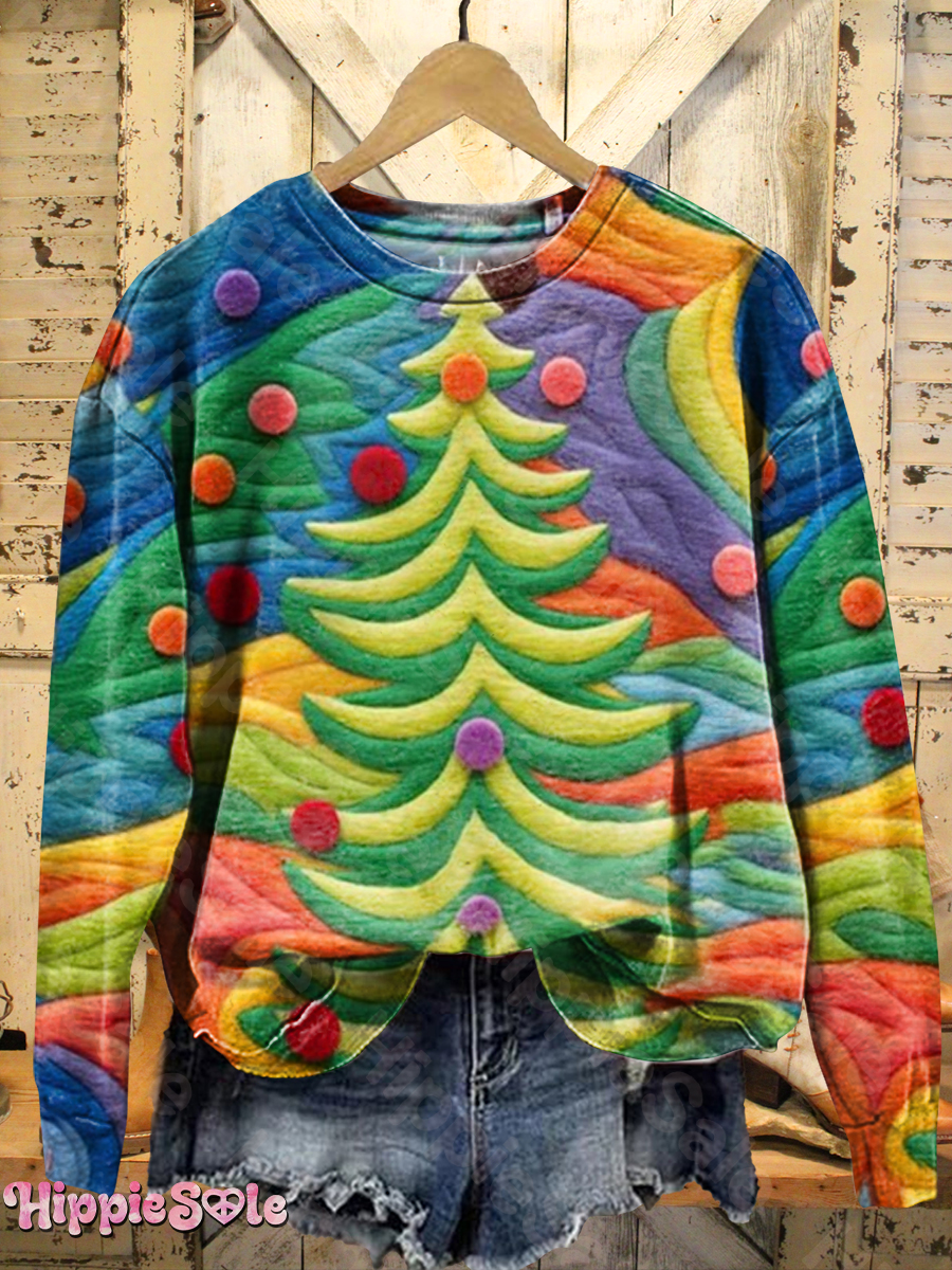 Women's Colorful Christmas Tree Texture Art Print Crew Neck Sweatshirt