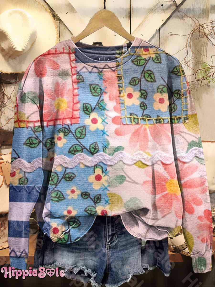 Women's Fresh Patchwork Floral Art Print Sweatshirt