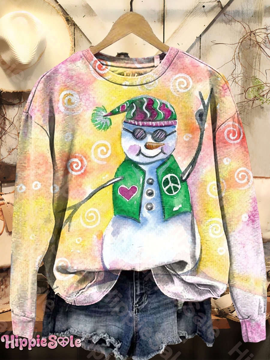 Women's Hippie Snowman Art Print Casual Crewneck Sweatshirt