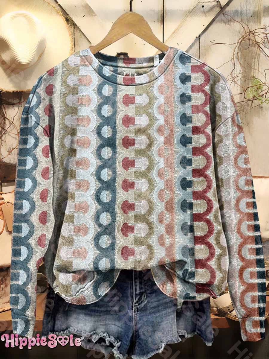 Women's Vintage Patchwork Floral Art Print Crewneck Sweatshirt